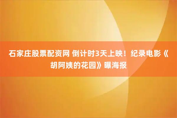 石家庄股票配资网 1905电影网讯 在各大国际影展获奖无数的佳片《胡阿姨的花园》倒计时3天上映!无论走到哪,一路都有花相伴!海报中昂扬的那支向日葵,就像胡阿姨永....